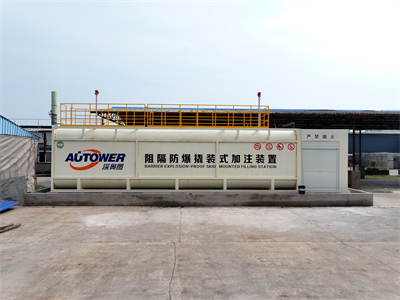 航油撬装装置核心通常分为2个部分,一是实现储存功能的阻隔防爆储油罐,包含储罐、阻隔防爆装置、呼吸阀、浮动吸油管等附件;二是实现主要工艺的设备撬,包含工艺管道、流量表、油泵、阀门、过滤器等一系列的设备,通??刂破饕何患?、可燃气体探测器、声光报警器和自动灭火器等也集中在设备撬中。此外,航油撬装装置还有配套设施,比如,固定设备的撬座和放置撬座的混泥土基座,按规范设置的围堰、隔油池、静电接地网、避雷针等安全设施。